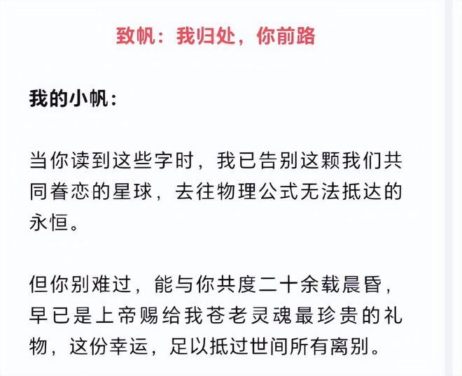 杨振宁去世后,他临终前写给文帆的告别信也被正式出版。我们简单总结一下杨先生来信的内容。首先我们来回顾一下过去20年两人的风风雨雨。接下来,特别美丽的一幕是1995年两人在一起时在汕头大学见面的场景。第三,我坚决支持文帆再婚。我希望她能看到杨和她一起看不到的地方。最后,不要被世俗观念所束缚,向前看,不要想念你的丈夫。我相信这封信是带着极大的诚意写的。 2004年,82岁的杨振宁与一名28岁的男子结婚。也许杨先生娶了一位年轻女子,她是一位伟大的物理学家。世界各地肯定存在此类批评。如果文帆没有嫁给杨先生,她可能会过着隐居的生活,如果她嫁给了一个普通人,她可能会过着隐居的生活。很高兴。然而,如果她嫁给了杨先生,她就注定不再是一个普通的女人。在外人看来,文帆牺牲了自己的青春,但从历史的角度来看,文帆只是因为嫁给了杨振宁而被载入史册的女人。时光悄然逝去,沧海变迁,二十年过去了,当年的争论也随着岁月的流逝而褪色。杨先生已经101岁了,文凡先生也快50岁了,已经不年轻了,所以我不知道该说什么,但今天的故事将成为历史。我的故事消失了。几年后,当人们提起这件事时,只能说82岁的杨振宁嫁给了28岁的文帆。两人继续合作了20多年,但也仅此而已。当然,杨先生也看到了文范的许多风景。我很久以来一直想说新年快乐。年龄相差这么大是不是说明你在一起的时候太忙照顾他了?你还年轻去见他吗?结果,我很快就看到了人们环游全国和世界各地的照片。我心胸狭窄。这个女人的丈夫不是一个有钱人,而是一个著名的科学家。肯定会有人照顾他们并考虑他们的旅行需求。总体来说,文帆的生活比大多数女人都要好。专门的医护人员正在等待杨振宁。她主要提供情感价值。而且,杨振宁并没有患有老年痴呆症。他知识渊博,我们沟通没有问题。看看其他女人。当你结婚、生子、抚养孩子、上班、做家务、在国内外侍奉丈夫,在某些情况下,你可能不得不离婚。他们没有金钱、地位或资源。如果家里出了什么问题,他们必须寻求帮助。他们确实无法与她相比。即使杨振宁作为伟大科学家的遗孀去世,国家也不会善待她很糟糕。 20多年来,他积累了多个高层人脉。也就是说,即使杨振宁离开,她也已经是人生赢家了。如果你感到孤独,你可以自己领养一个美丽健康的孩子。像她这样的人,有这些资源,普通人根本不用想。时间一晃而过,这位少妇几乎已经是一个老人了。杨先生鼓励文帆再婚,但相信他永远找不到比杨振宁更爱他的人。只能说,杨振宁这样的丈夫,除了年龄之外,各方面都是一流的。这并没有什么真正的诽谤性。
